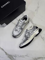 Chanel CC Logo Metallic Mesh Sneakers White/Silver