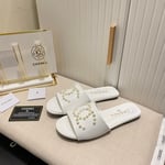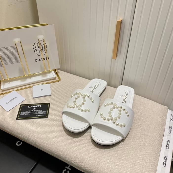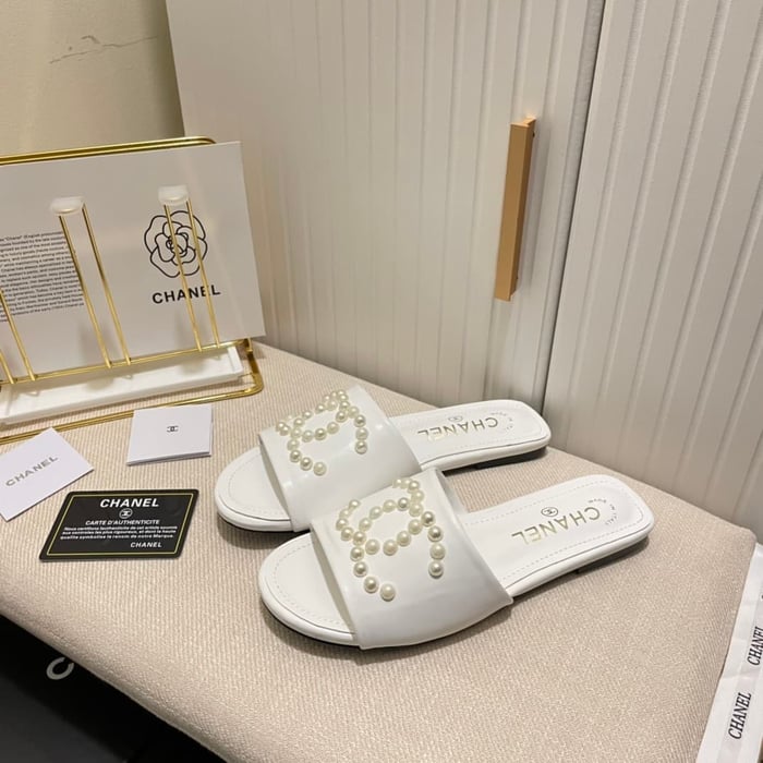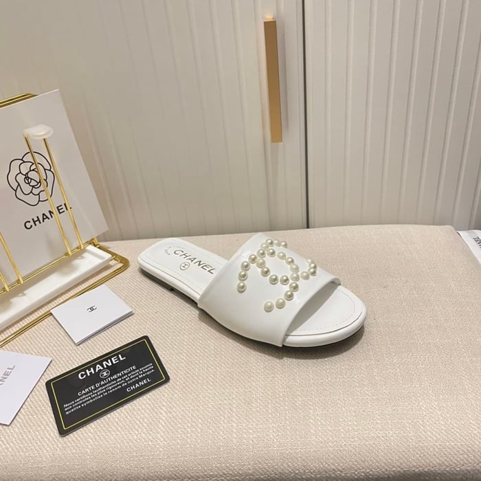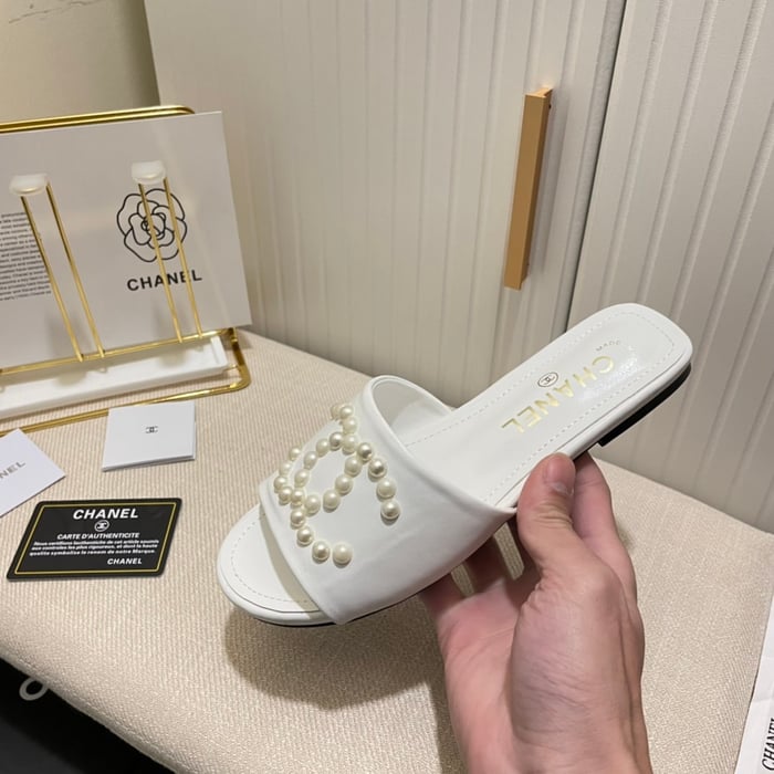 Chanel Shiny Pearl Crystal Cc Heart Thong Sandals Light Pink