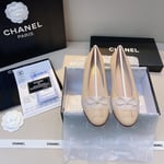 Chanel Embroidered Espadrille Leather Black Cap Toe Flats White Cc