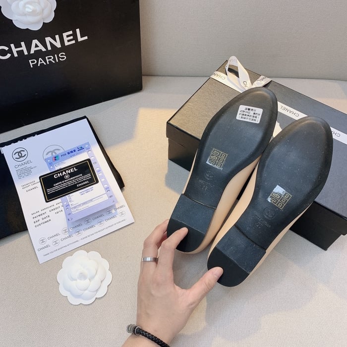 Chanel Cc Espadrilles Slip On Sheepskin Beige Black G29762 X01000 C0204