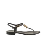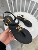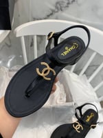Chanel Gold Cc Logo Thong Sandals Black