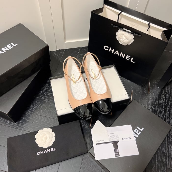 Chanel Interlocking Cc Logo Ballet Flats Black Pink