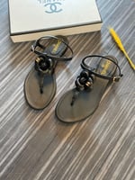 Chanel Jelly White Rubber Camellia Cc Logo Sandals Black