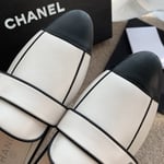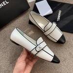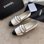 Chanel Leather Cc Cap Toe Slip On Loafers White