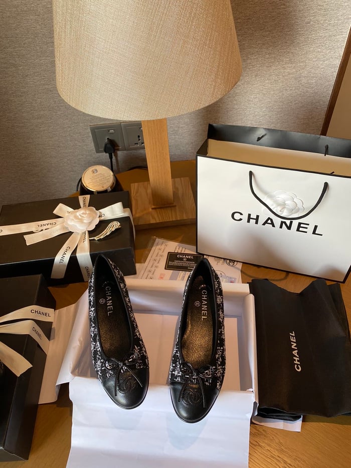 Chanel Plain Toe Rubber Sole Casual Style Tweed Black