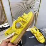 Chanel Cc Espadrilles Tweed Slip On Crinkled Beige