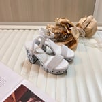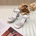Chanel Camellia Medium Heel Slippers White