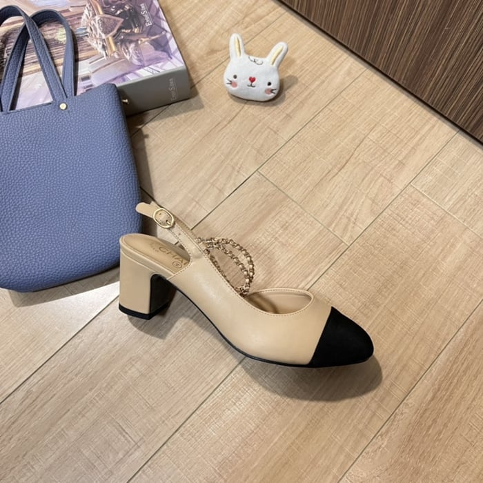 Chanel Slingbacks Goatskin &Amp; Grosgrain Beige &Amp; Black G31318 Y50006 C8378