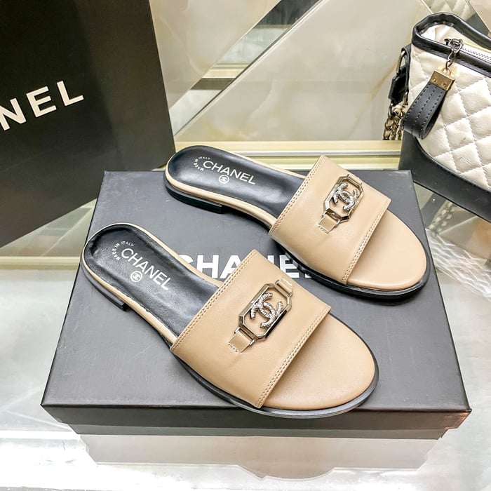 Chanel Slippers With Cc Silver Hardware Beige