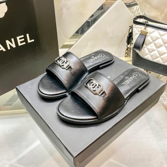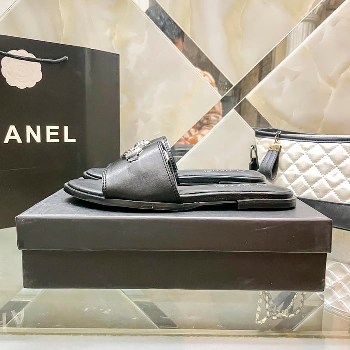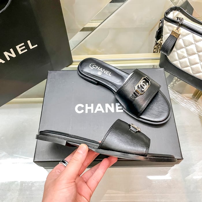 Chanel Slippers With Cc Silver Hardware Black G45172 B13906 Nq961