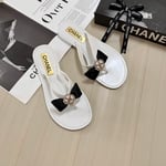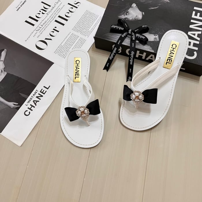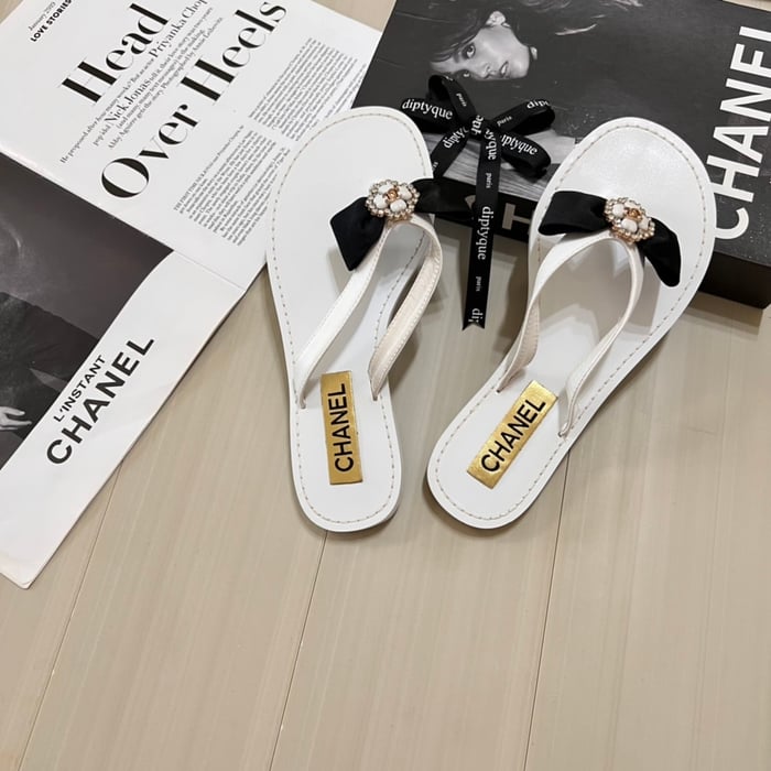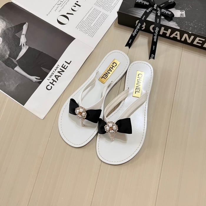 Chanel Thong Slide White Camellia Cc Logo Bow White