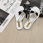 Chanel Shiny Pearl Crystal Cc Heart Thong Sandals Black G39674 X01000 94305