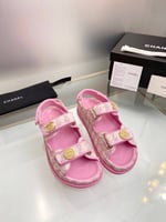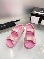 Chanel Tweed Sandal Pink Ecru Cotton G35927 X56999 K5945