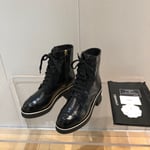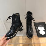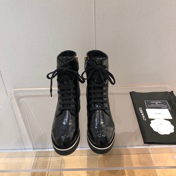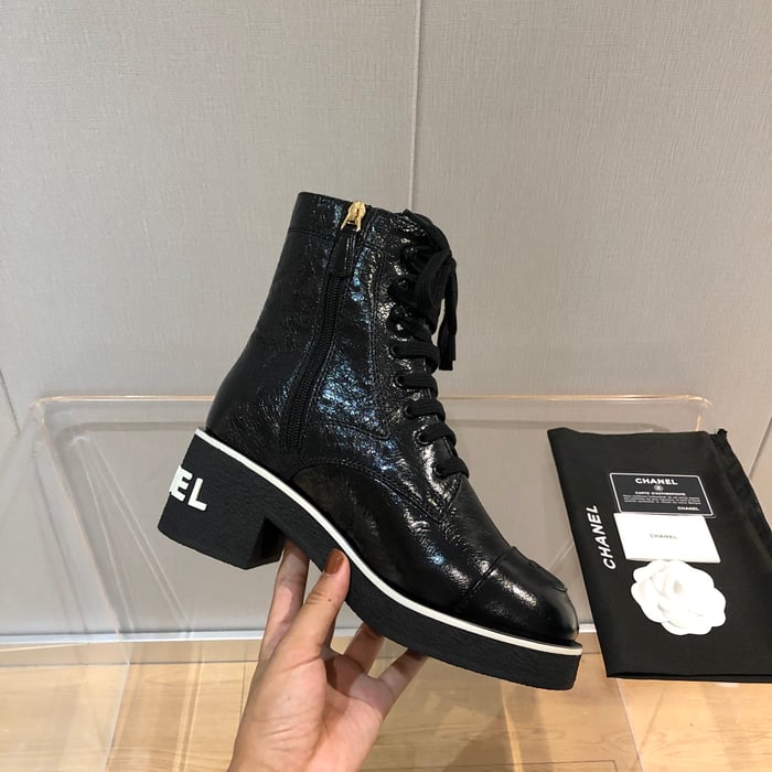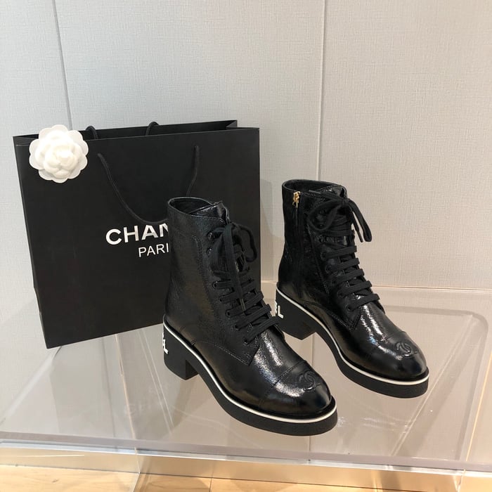 Chanel White Logo Crinkled Leather Combat Boots For Women