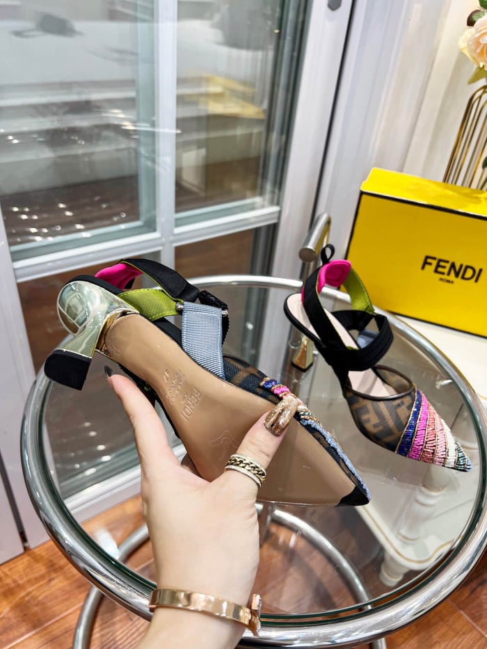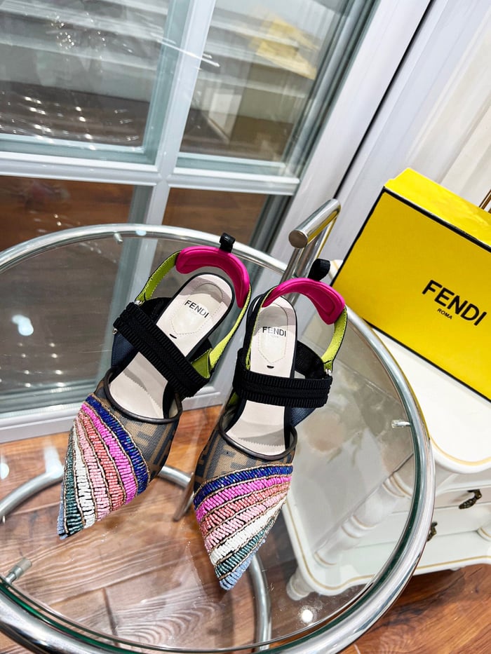 Fendi Colibri 85Mm Beaded Slingback Pumps Rainbow 8J8143Ai1E