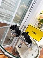 Fendi Cutout Metal Block Heel Padded Leather Sandals Black