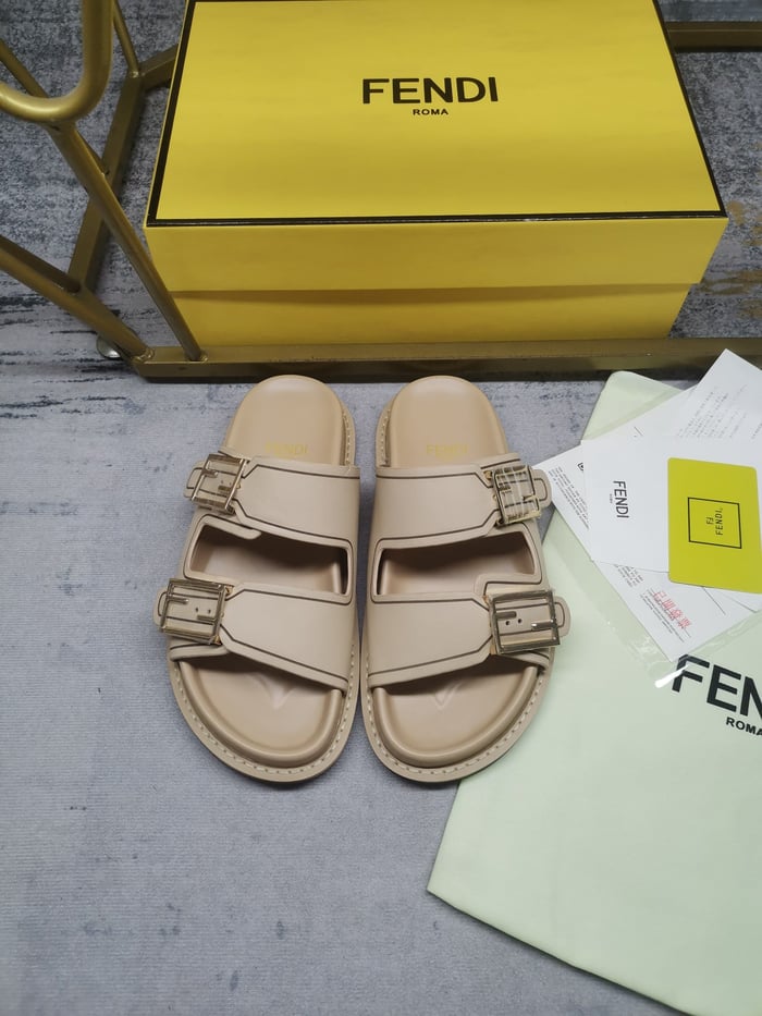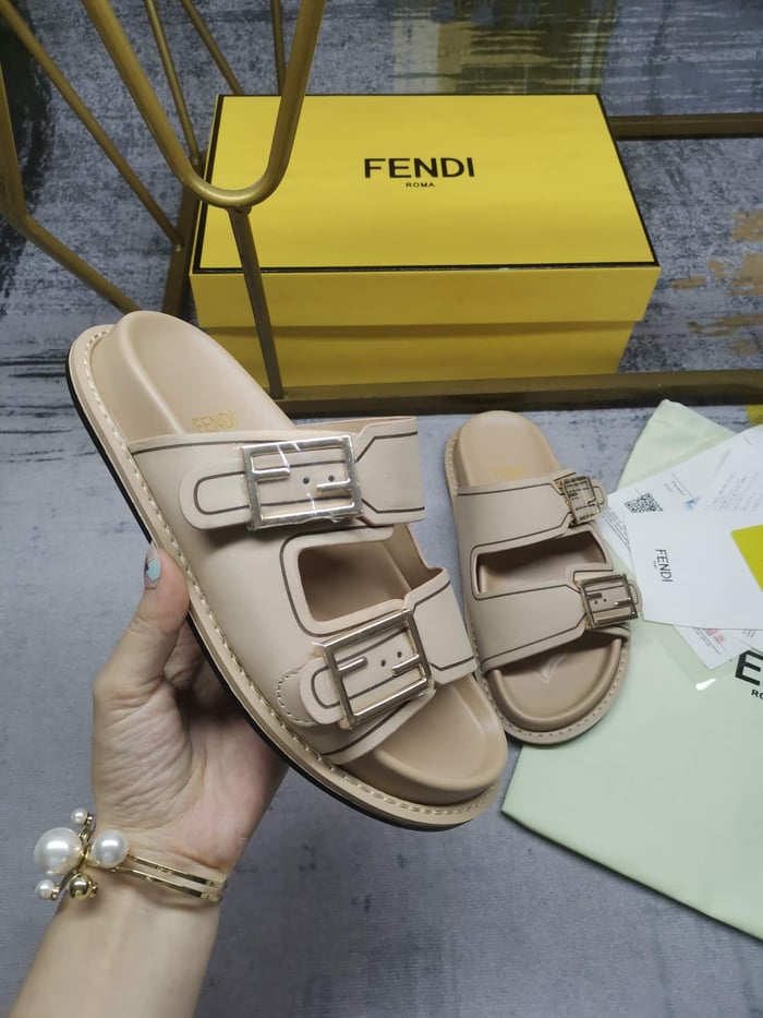 Fendi Feel Leather Slides Beige 8X8326Na7F1Kcu