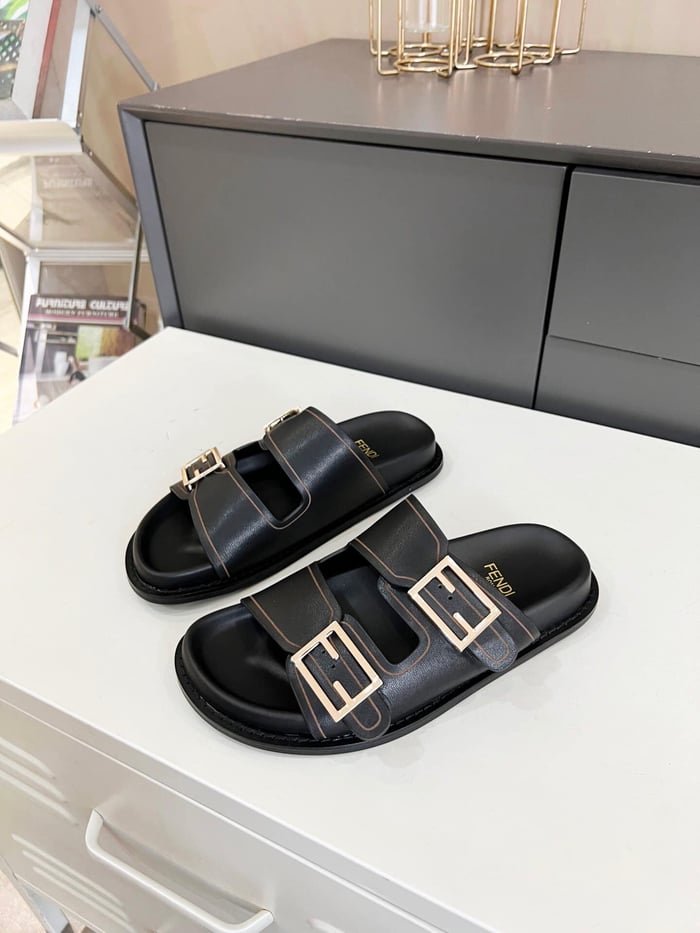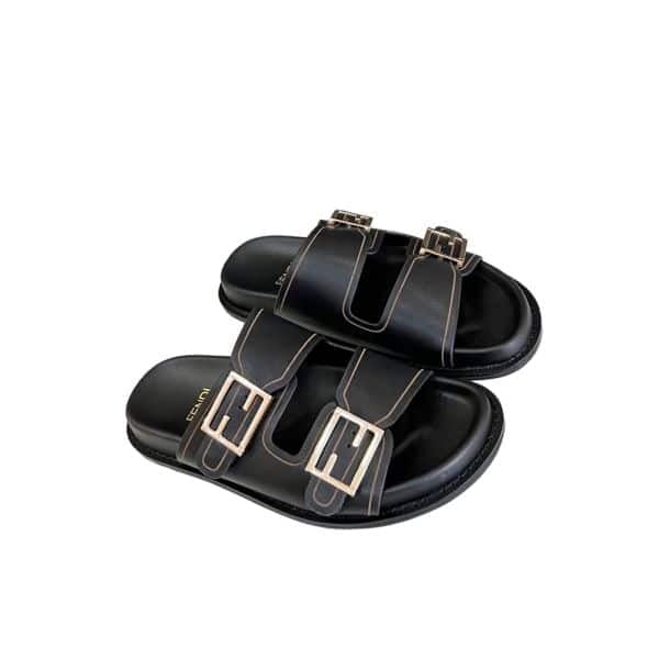 Fendi Cutout Metal Block Heel Padded Leather Sandals Black