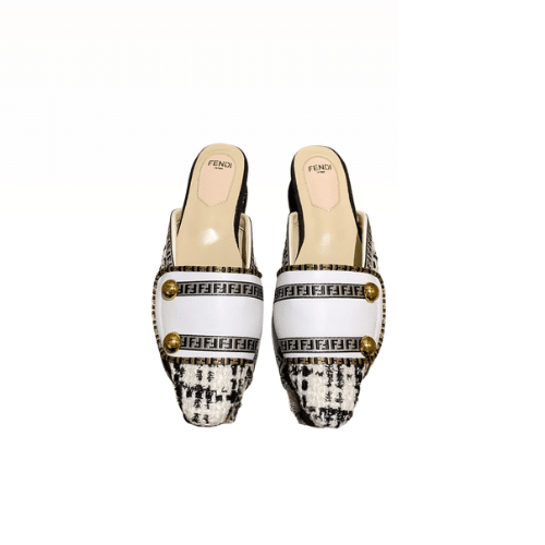 Fendi Feel Dove Grey Ff Chenille Slides White