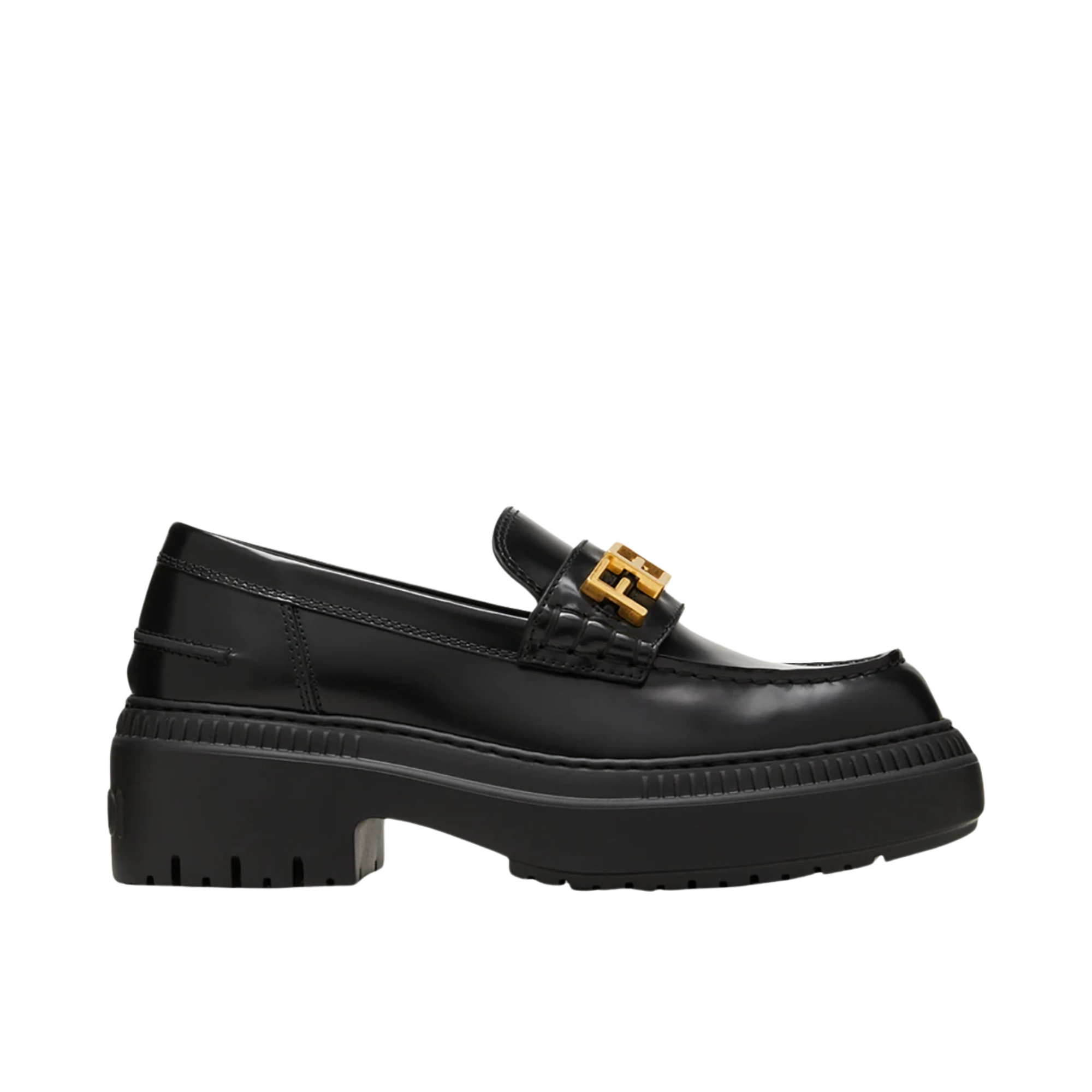 Fendi Cutout Metal Block Heel Padded Leather Sandals Black