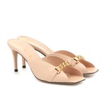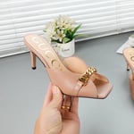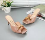 Gucci Chain Stiletto Heels Flip Flop Fish Mouth Mule Sandals Patel Pink