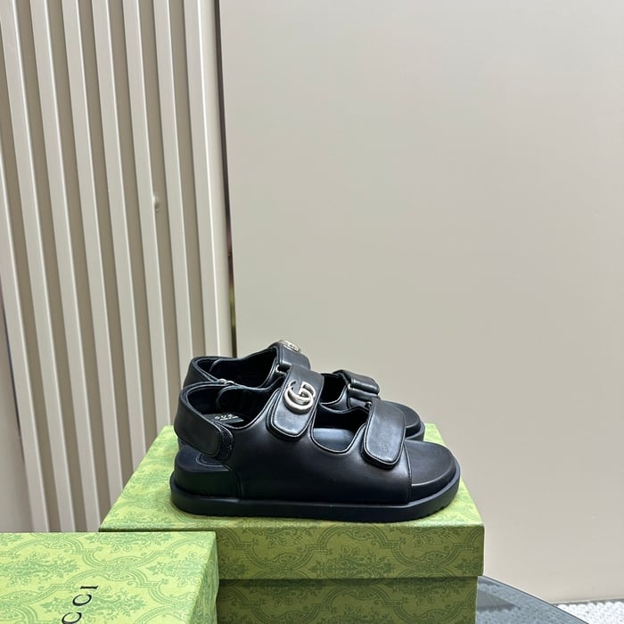 Gucci Double G Sandal Leather Black 674840 Bko00 1000