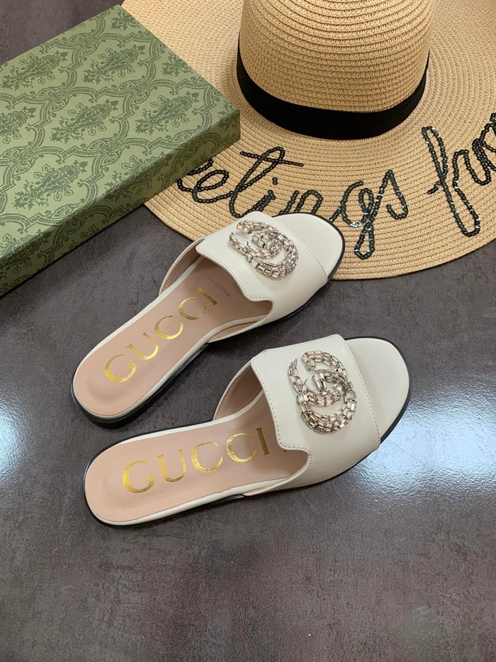 Home Shop Shoes Gucci Shoes Gucci Double G Slippers Leather Beaded In White