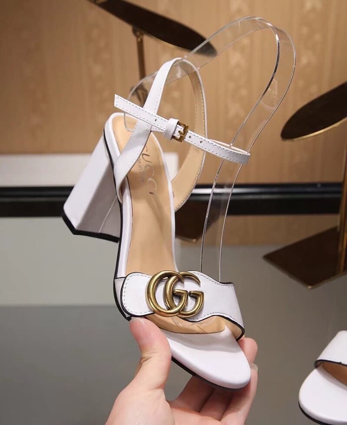 Home Shop Shoes Gucci Shoes Gucci Leather Mid Heel Sandal White