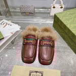 Gucci Women’S Horsebit Mule Gg Suede Brown 798740 Aaduy 9556