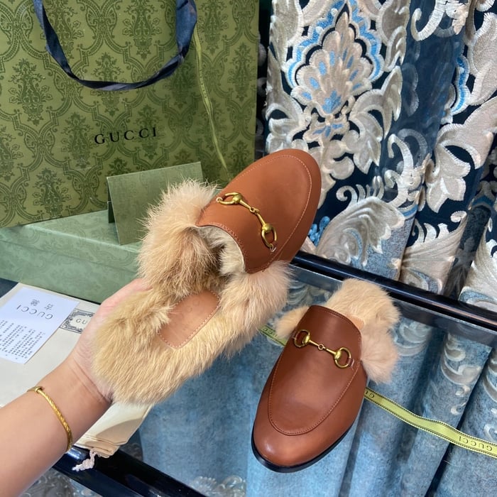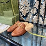 Home Shop Shoes Gucci Shoes Gucci Princetown Furlined Leather Slippers In Brown