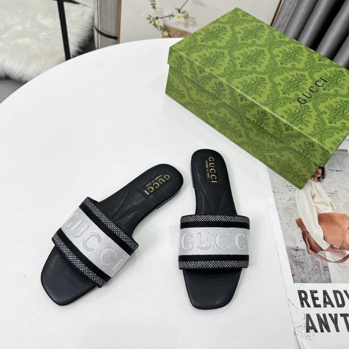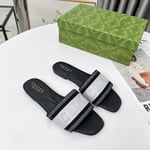 Gucci Women Slide Sandal With Web Black And White 817564 Faecg 8843