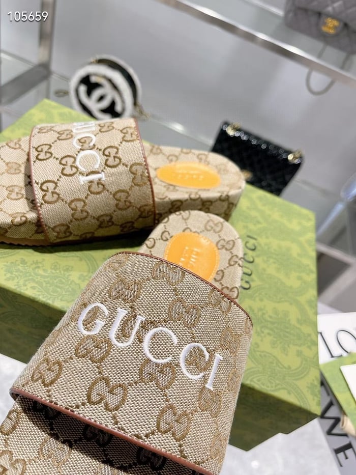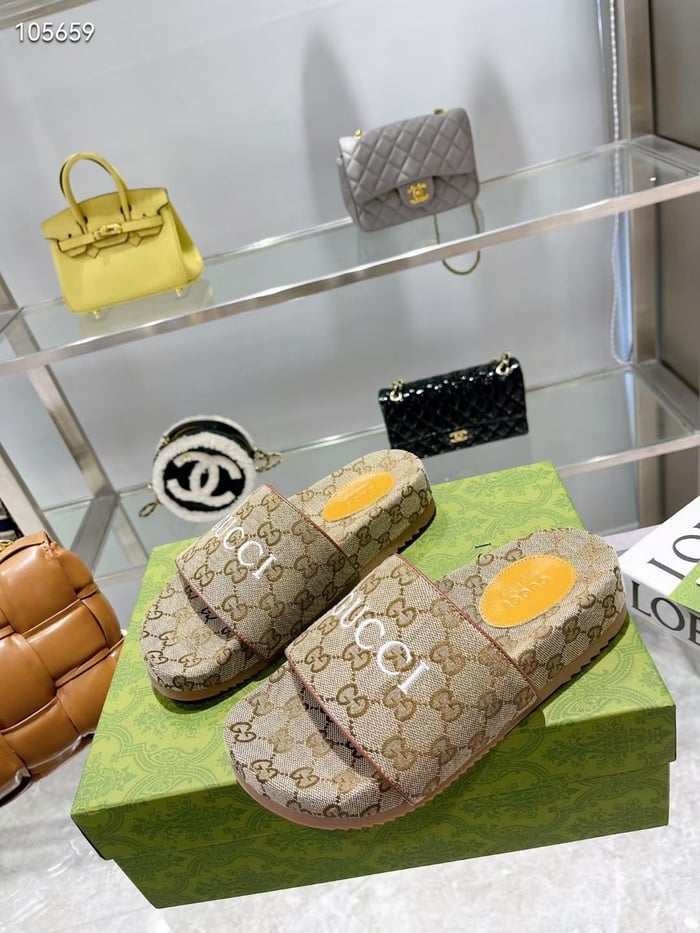 Gucci Women’S Gg Canvas Slide Sandal Beige Ebony