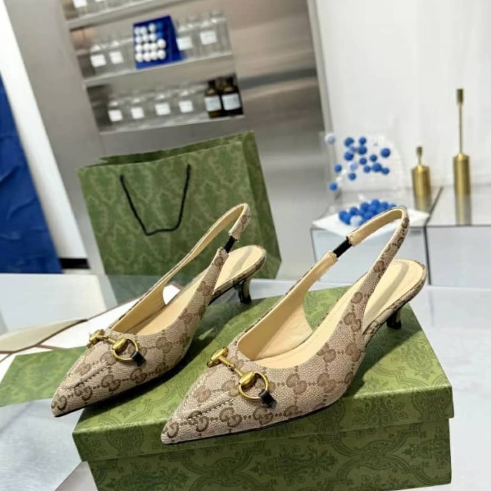 Home Shop Shoes Gucci Shoes Gucci Women’S Gg Canvas Slingback Pump Beige And Ebony Original Gg Canvas 782627 2Hk80 9763