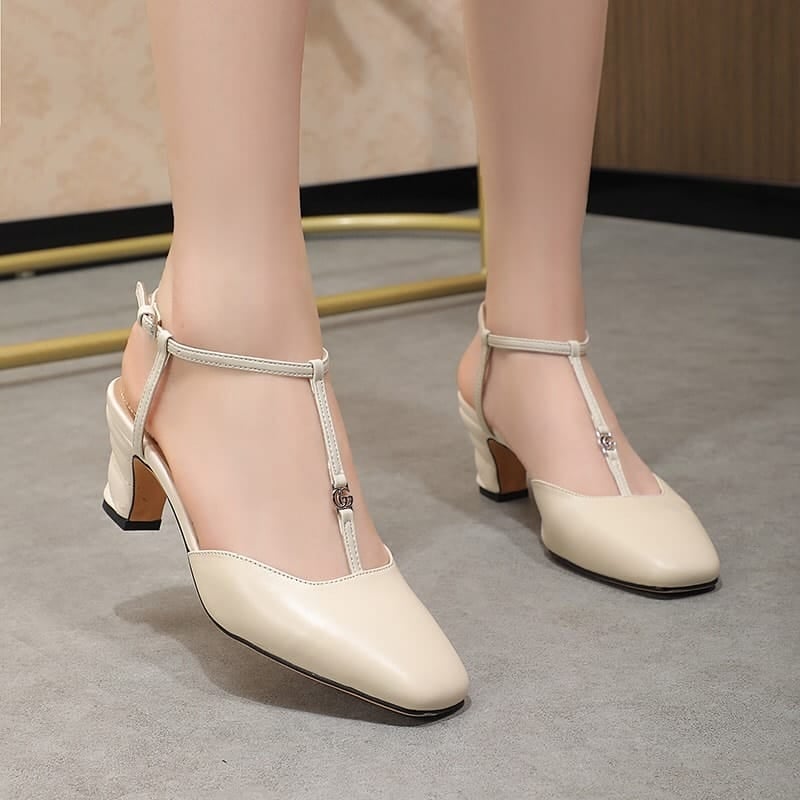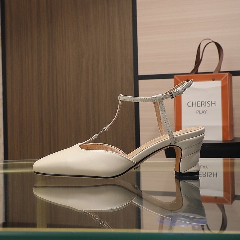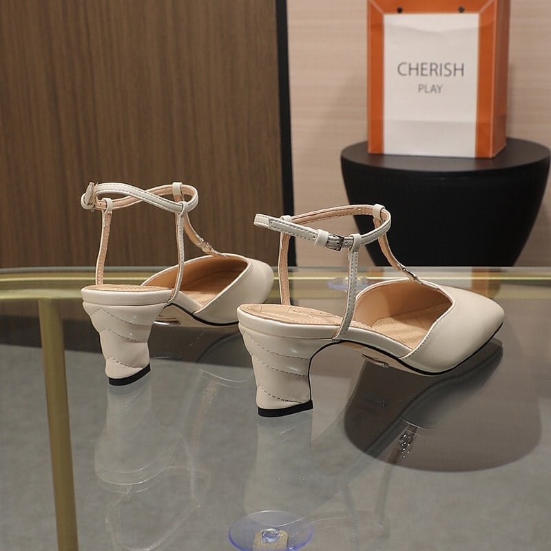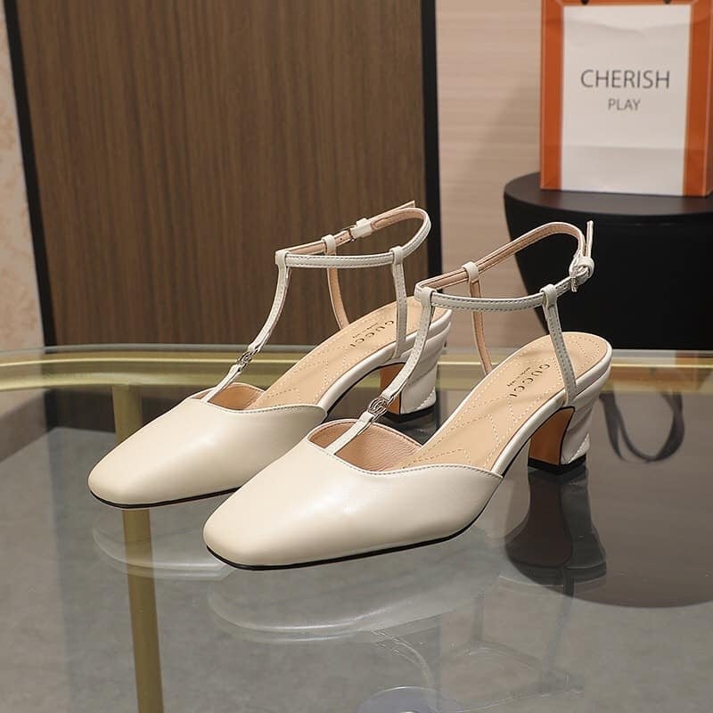 Gucci Leather Mid Heel Sandal Beige