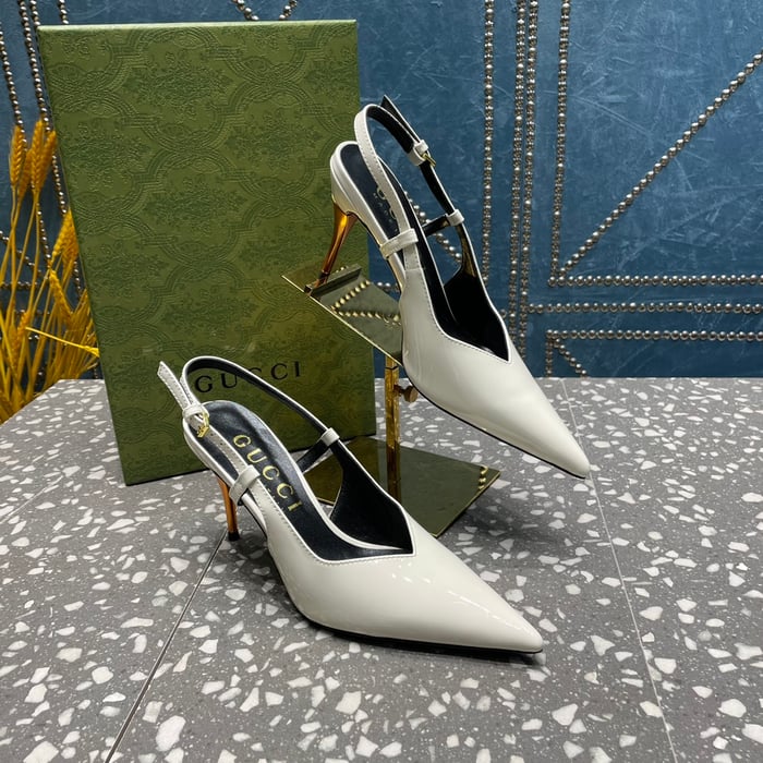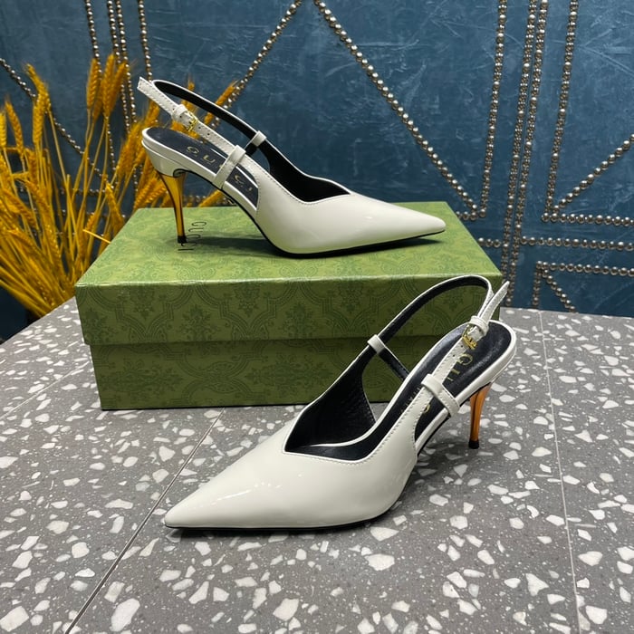 Gucci Leather Mid Heel Sandal White