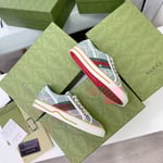 Gucci Women’S Re Web Sneaker Original Gg Canvas Beige And Blue ?787476 Aadhw 9552