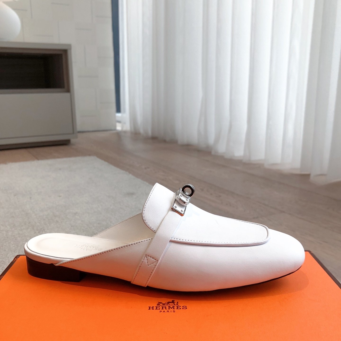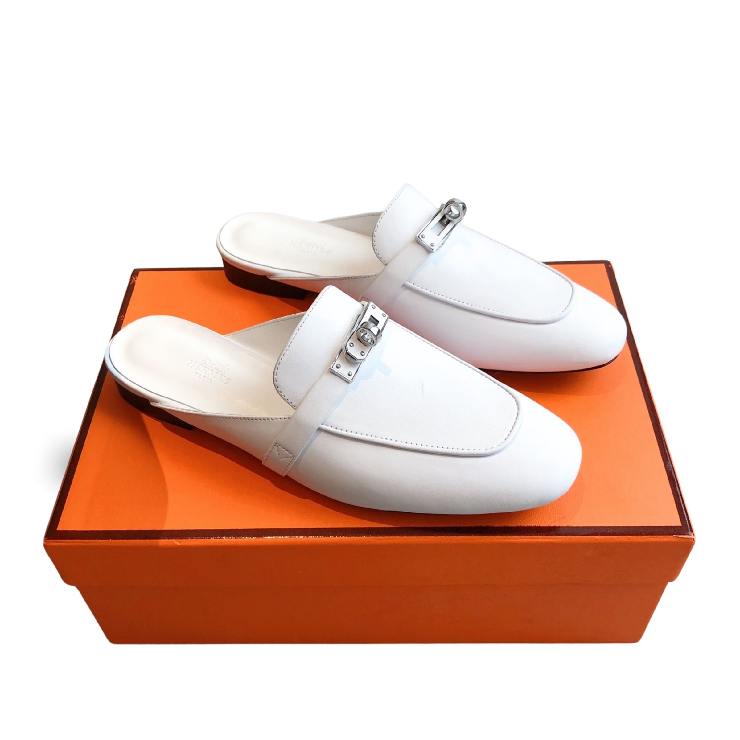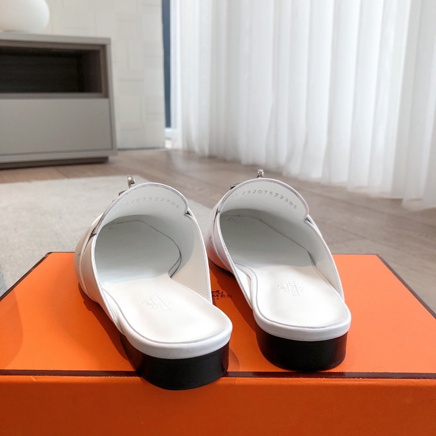 Hermes Slippers Flat Oran Full White H202272Z 2V350