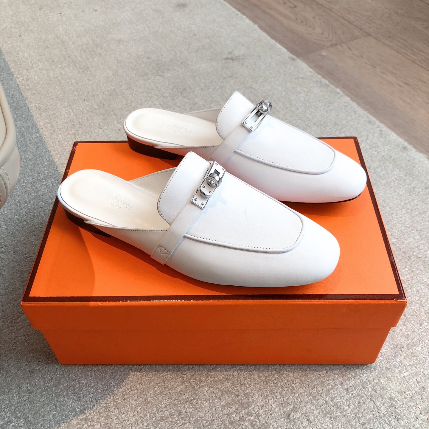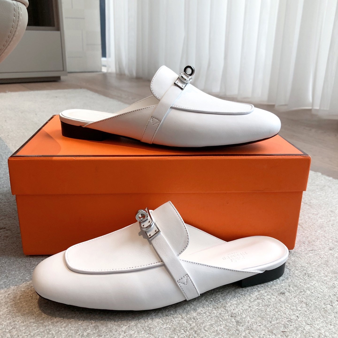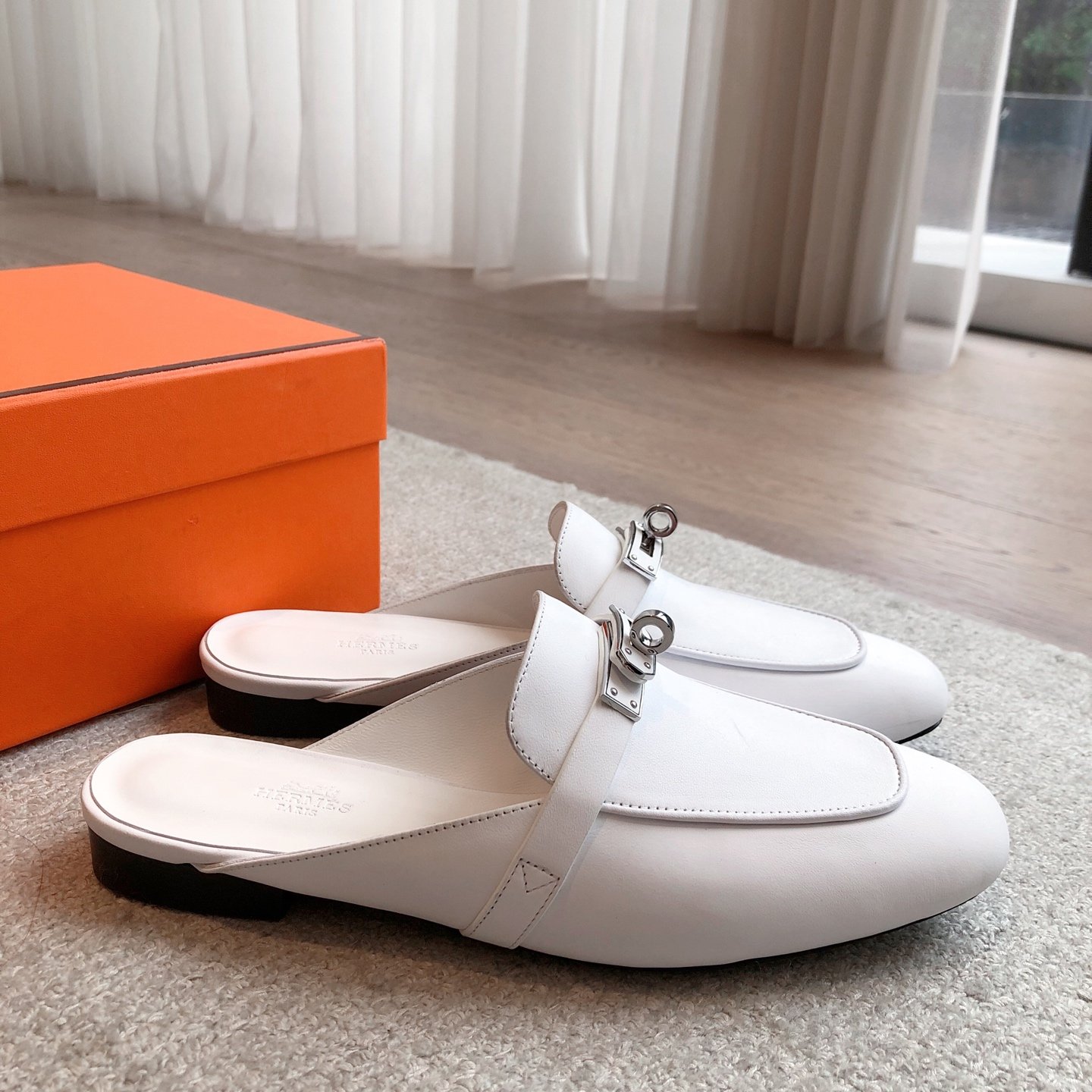 Hermes Slippers Flat Oran Full White H202272Z 2V350