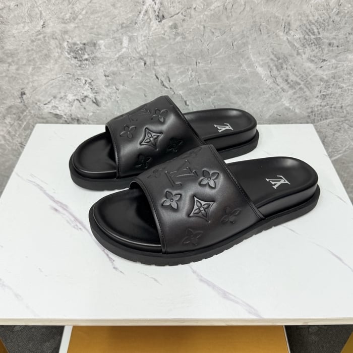 Louis Vuitton Miami Mule Monogram Embossed Synthetic Black 1Adgfe