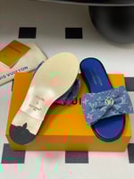 Louis Vuitton x Takashi Murakami Lily Flat Mule Bow Slide Sandals Blue Canvas 1AGVYA