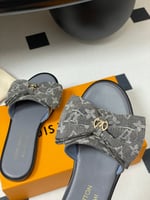 Louis Vuitton x Takashi Murakami Lily Flat Mule Bow Slide Sandals Grey Canvas 1AGVYA