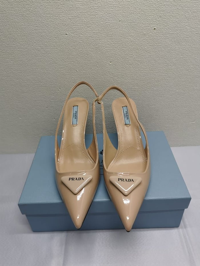 Prada Brushed Leather Slingback Pumps Beige Pink 1I901M055F0236F075