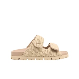 Prada Fussbett Raffia Dual Buckle Slide Sandals Beige