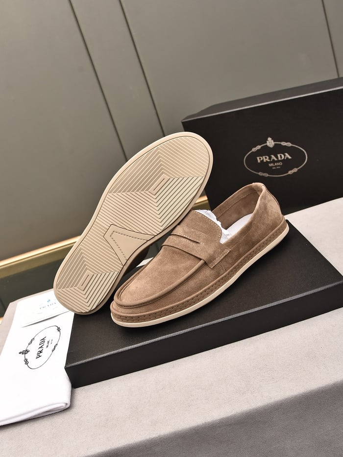 Prada Men’S Flat Loafers Suede Leather Brown