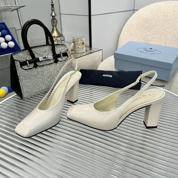 Prada Patent Leather Slingback Pumps Ivory 1I838N 069 F0304 F 085