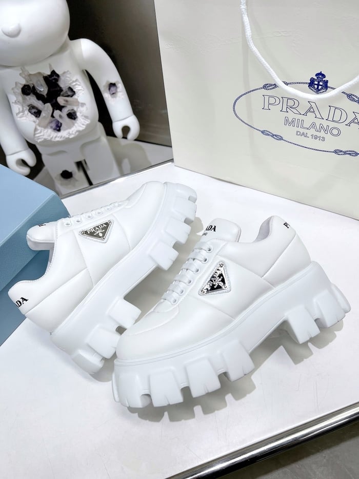 Prada Soft Padded Nappa Leather Lace Up Shoes White