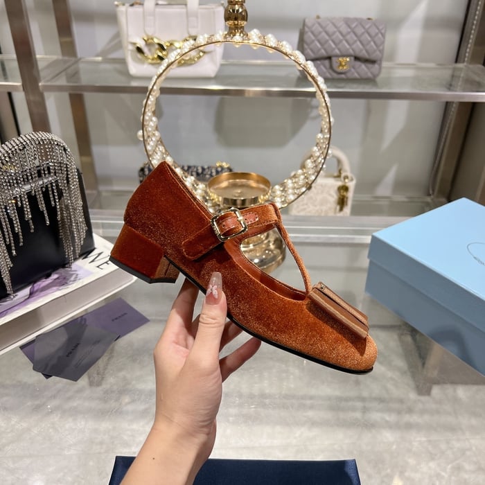 Prada Velvet Mary Pumps Ginger