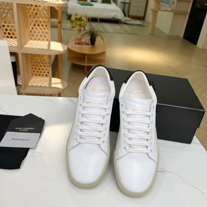 Saint Laurent Court Classic Embroidered Sneakers Black And White