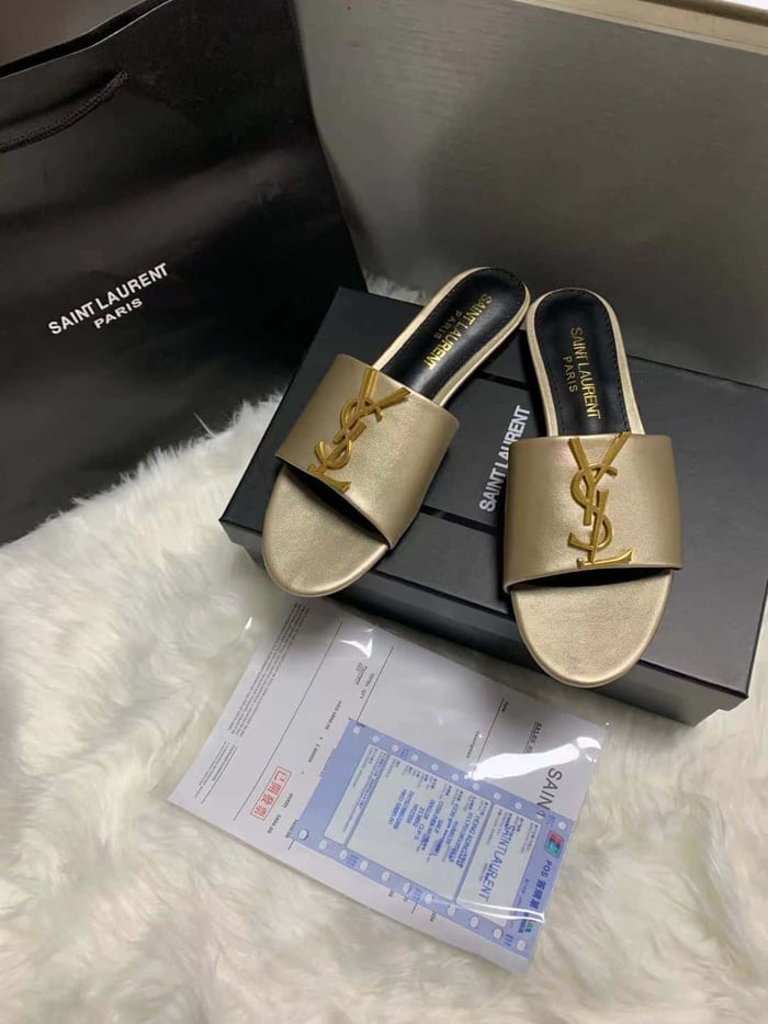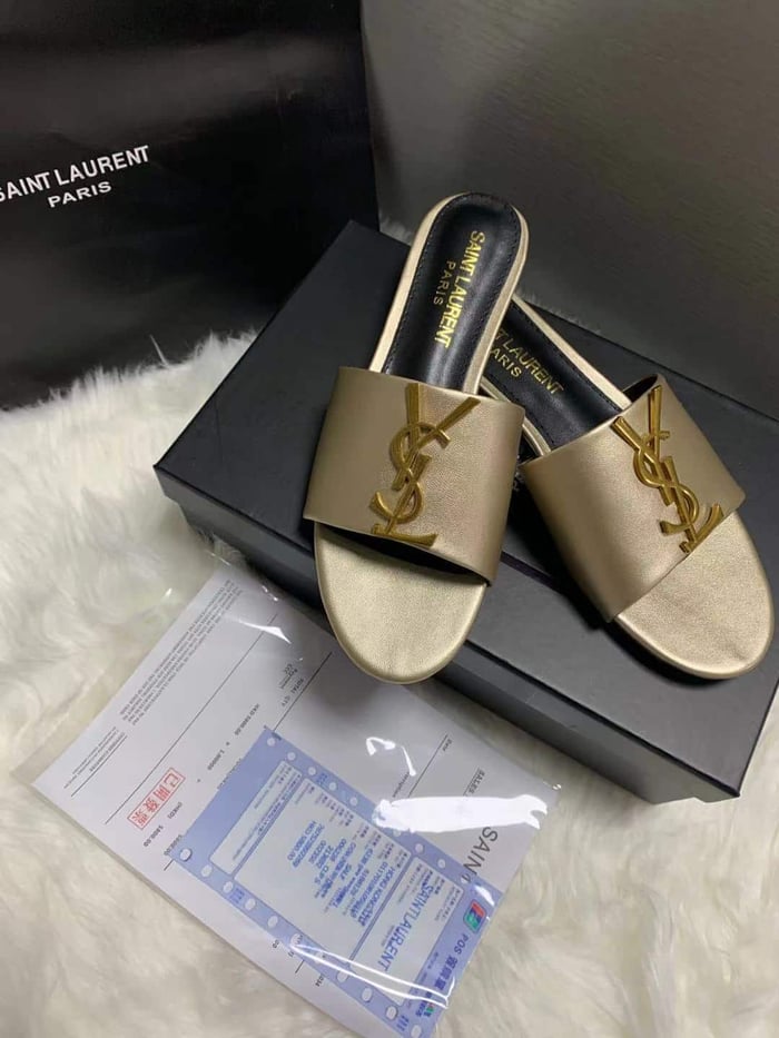 Saint Laurent Logo Slippers Metallic
