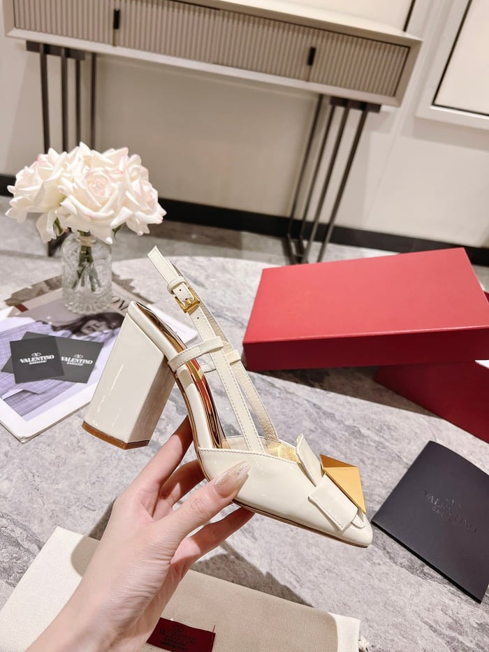 Valentino Vlogo Signature Back Strap Crystal High Heels White